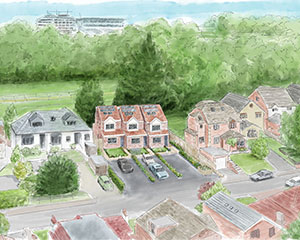 Earlier in 2024, we had an opportunity to work with a new client in Epsom with a view to developing their property for residential housing. The site was clearly under utilised and having reviewed the properties in the road, decided to follow the precedent set. Our architect designed a staggered terrace of three x 3 bed houses over three floors, using the top floor as the master suite.